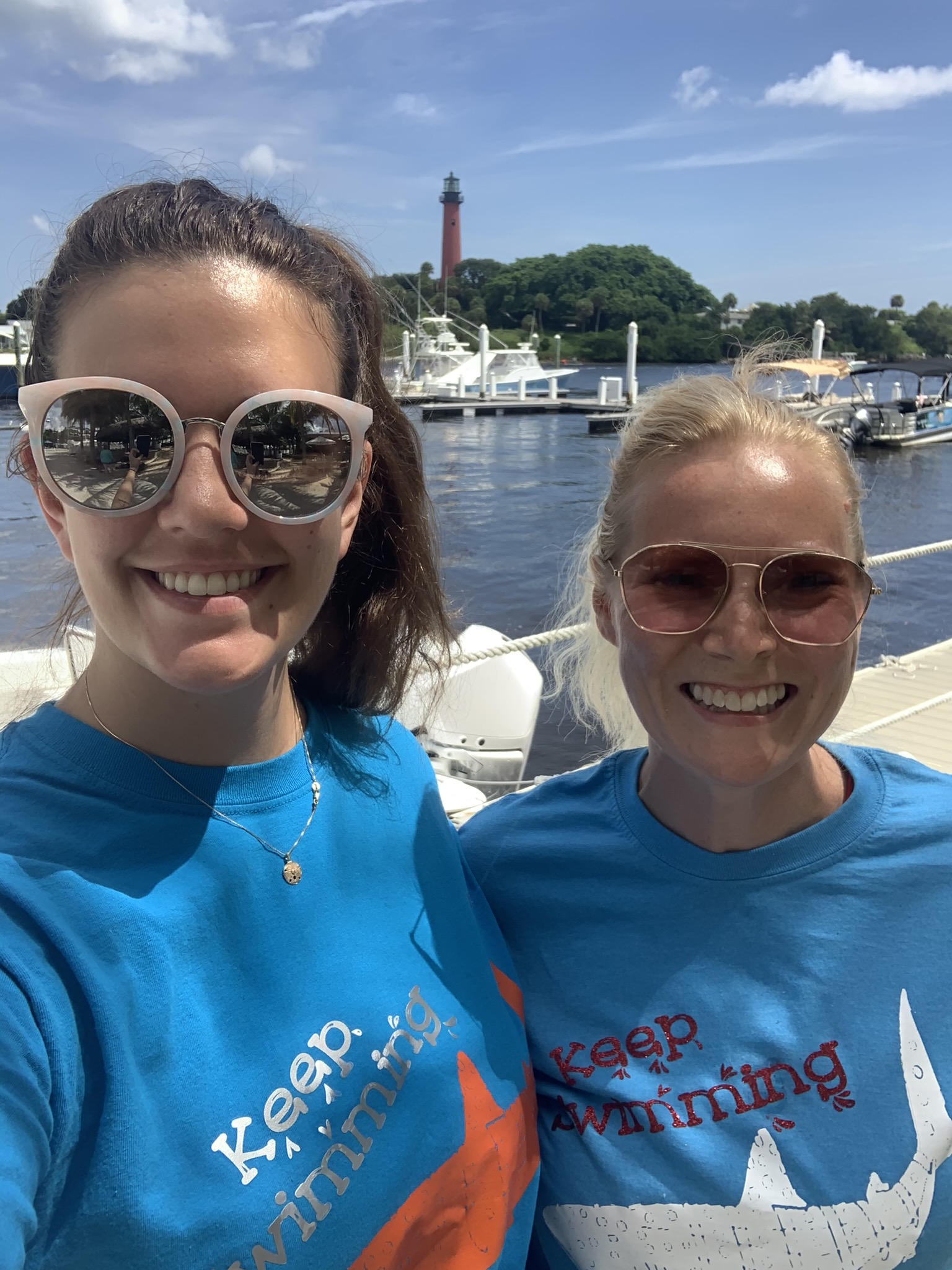 About a half hour later, we arrived at our first location. Alex jumped in after The Captain threw the bait box in. It was surreal watching The Captain shave a fish while we waited for the sharks to come. I had never been nervous to get in the water with sharks; honestly, I was more nervous that I had started my menstrual cycle Friday morning (TMI, I KNOW), and I was going to leak on my towel in front of other people. I did research: sharks can’t smell blood; that’s a common misconception; plus it mixes with the salt water. BTW, I knew it was coming before I left North Carolina (a planner, remember). Plus, I felt very safe, which I know is a weird statement when you are about to jump into the deep ocean with sharks.